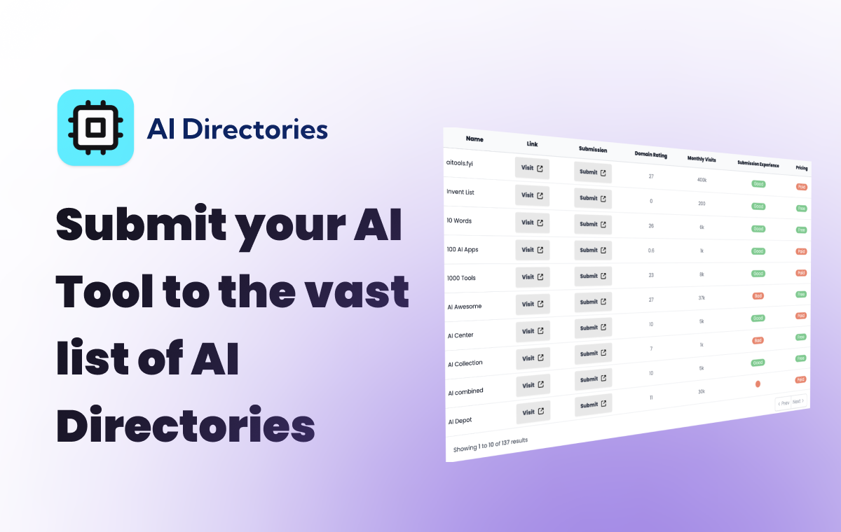 We can help you launch your AI product to 100+ directories. Increase your domain authority and secure valuable backlinks to improve your SEO.