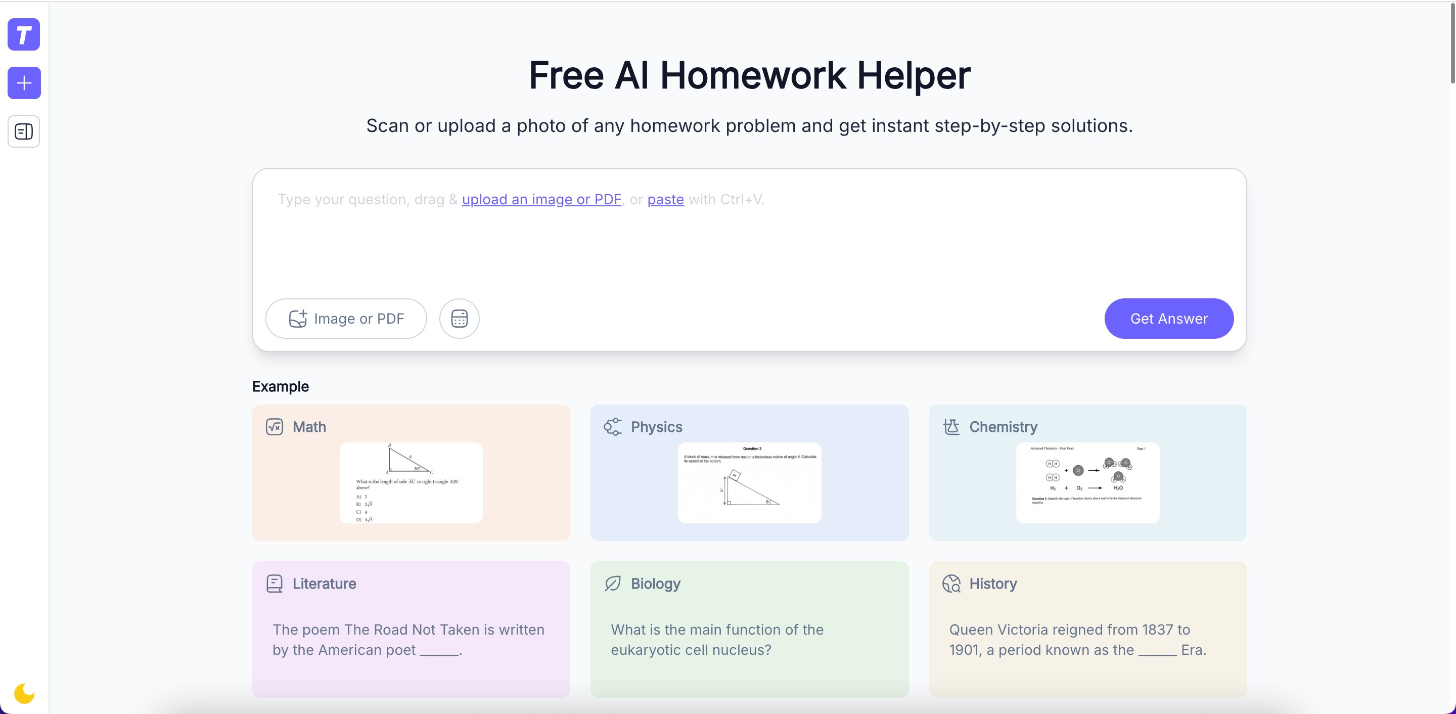 TutorGPT is a free AI homework helper that lets students upload photos of homework problems and receive clear step-by-step solutions across subjects like math, science, and writing.